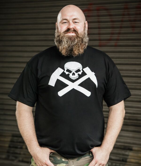 Damit die Muskeln nicht komplett verschwinden trägt Timmy (178cm/110kg) das Shirt in XL.